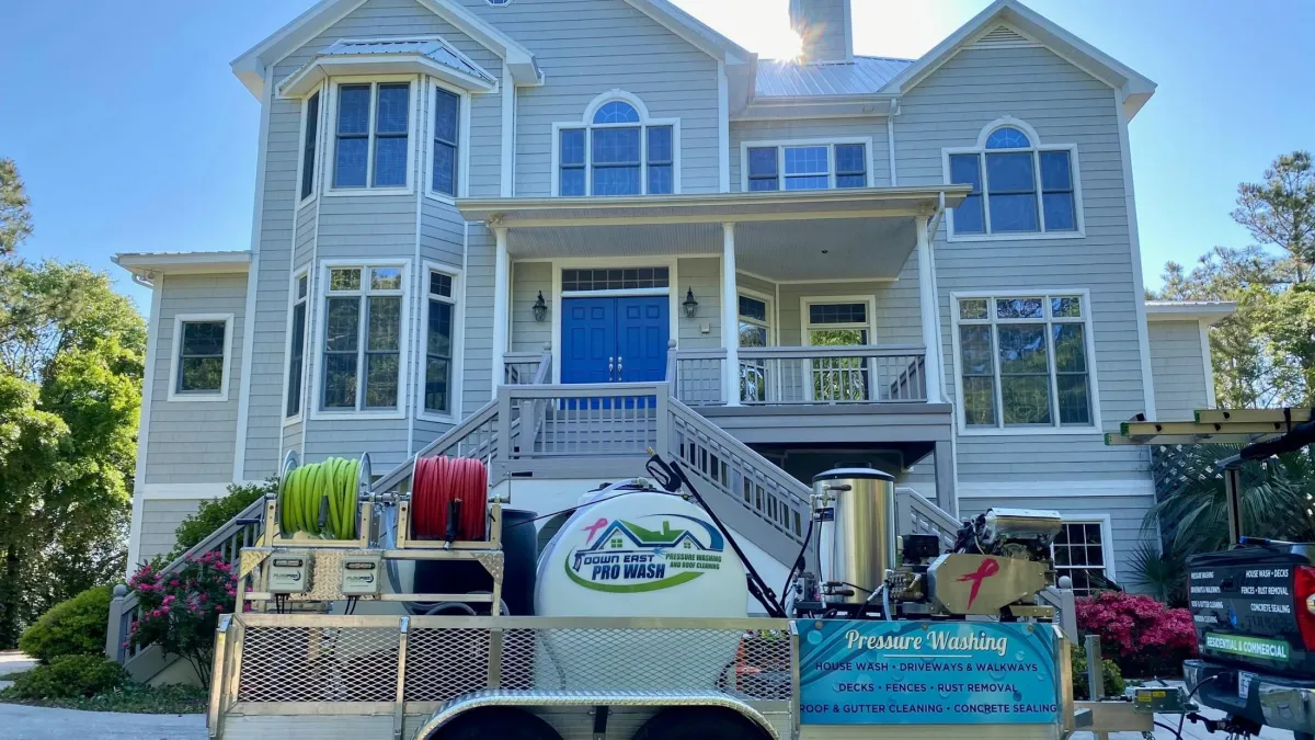 Professional cleaning of exterior surfaces, driveways, and walkways to enhance curb appeal.